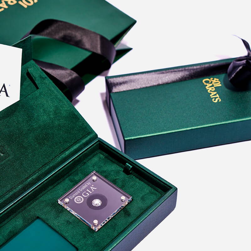 Priorytetem 301Carats jest zapewnienie Klientom tylko najwyższej jakości diamentów. Każdy diament bezbarwny w zestawach prezentowych ma kształt okrągły (brylant), barwę F, czystość VS, szlif Excellent oraz nie posiada fluorescencji. Diamenty żółte natomiast mają kształt poduszki (cushion), barwę Fancy Yellow, czystość VS i szlif od Very Good do Excellent. Oceny jakości potwierdzone są niezależnym certyfikatem GIA.