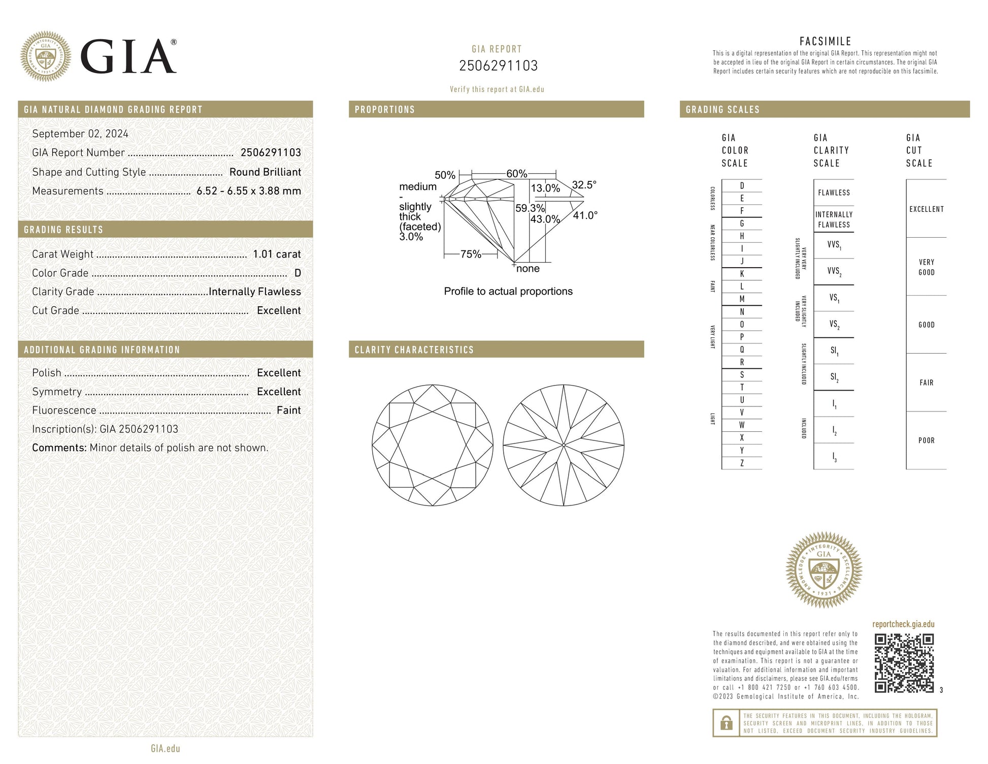 Diament posiada certyfikat GIA, który po dokonaniu zakupu jest wysyłany wraz z zamówionym produktem.